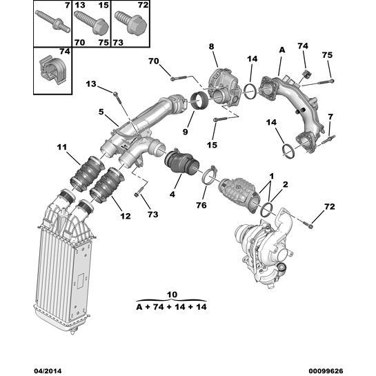 Number 10 in the image, this includes parts A, 74 and 14.