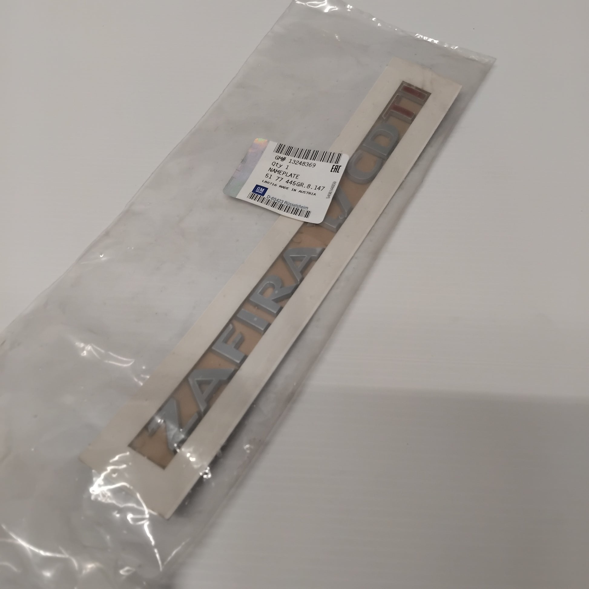 Genuine Vauxhall rear bumper badge, for the Zafira B models. It features self adhesive backing for easy installation.