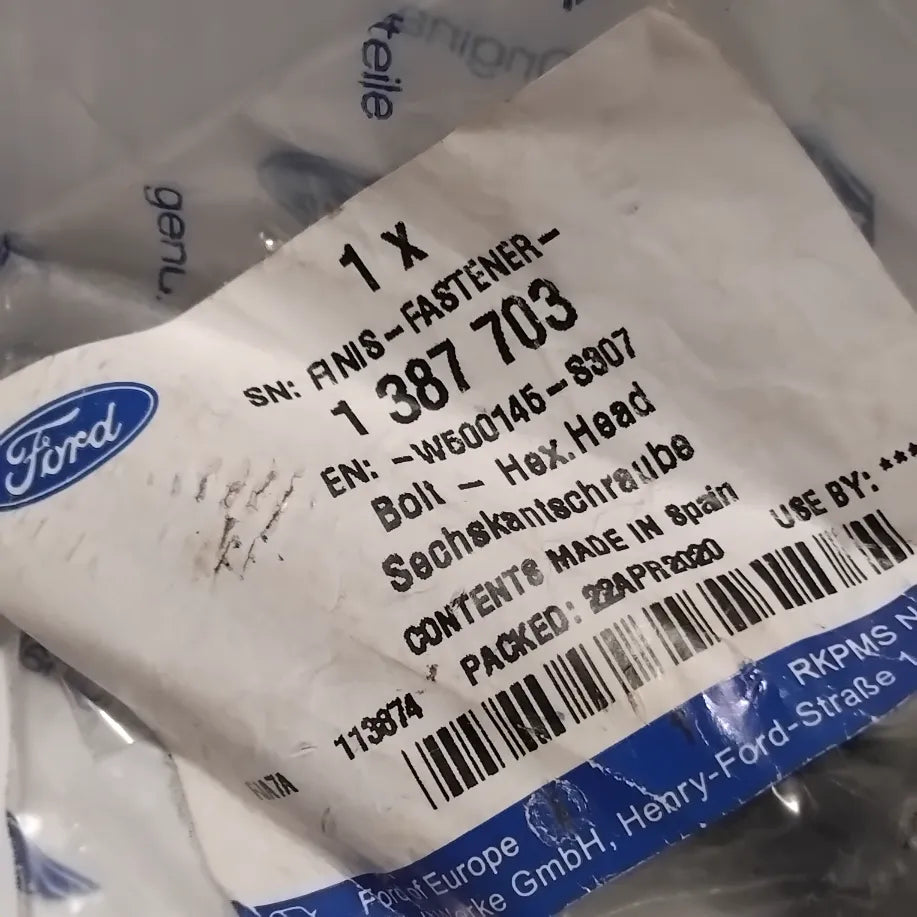 Genuine Ford Bolt - Hex.Head Part Number 1387703. We haven't gotten around to imaging or describing this part yet! If you are interested in purchasing this part, our stock levels on eBay are updated hourly, if you need an image or have any other questions please get in touch.