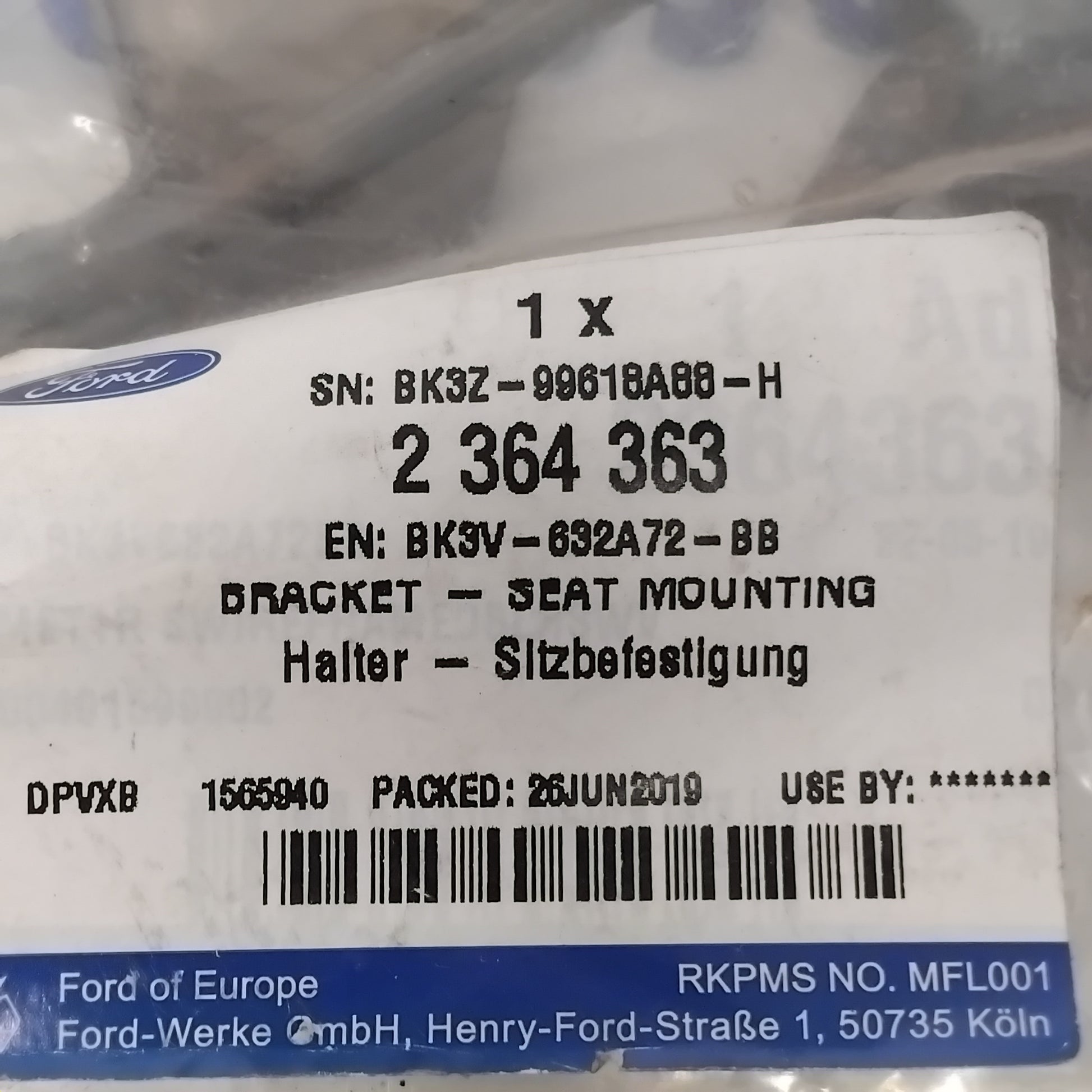 Genuine Ford bracket, for the front left seat. Designed for the Ford Transit models made from 2014 onwards.