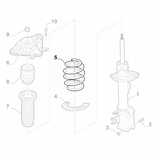 Marked as number 5 in the drawing, to be installed on the rear right/driver side of the vehicle. Designed for the Jeep Renegade models made from 2014 onwards, with front wheel drive.