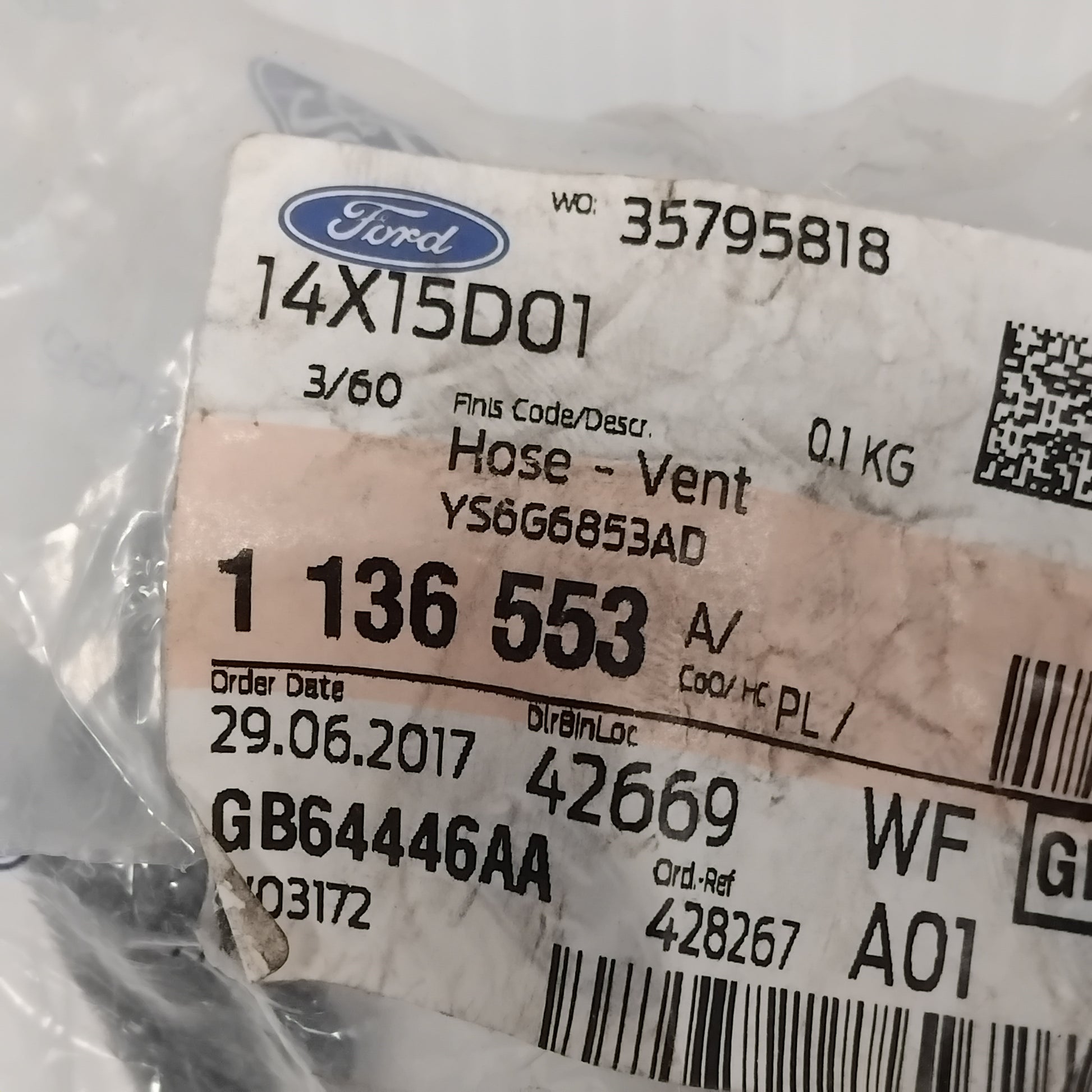 Genuine Air Filter Vent Hose - Ford Fiesta 1999-2002 | 1136553