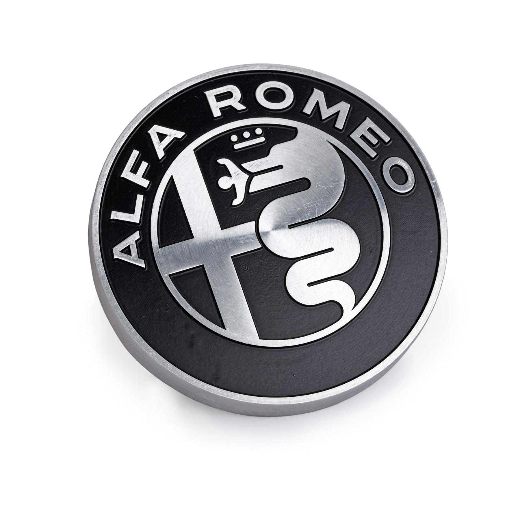 An item of great visual and structural impact, thanks to its weight and superb finish, useful for keeping papers and documents in place on desks and tables. Paperweight in forged aluminium with the new Alfa Romeo logo, matt black lacquer finish with radial marbling. Black flock adhesive on the back.