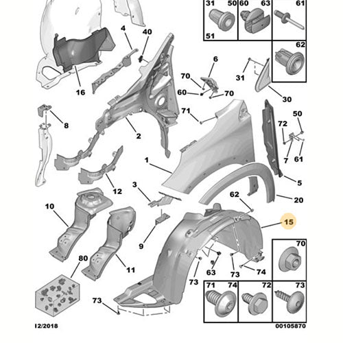 RHF Wheel Arch Liner - Peugeot 2008 2016-2019