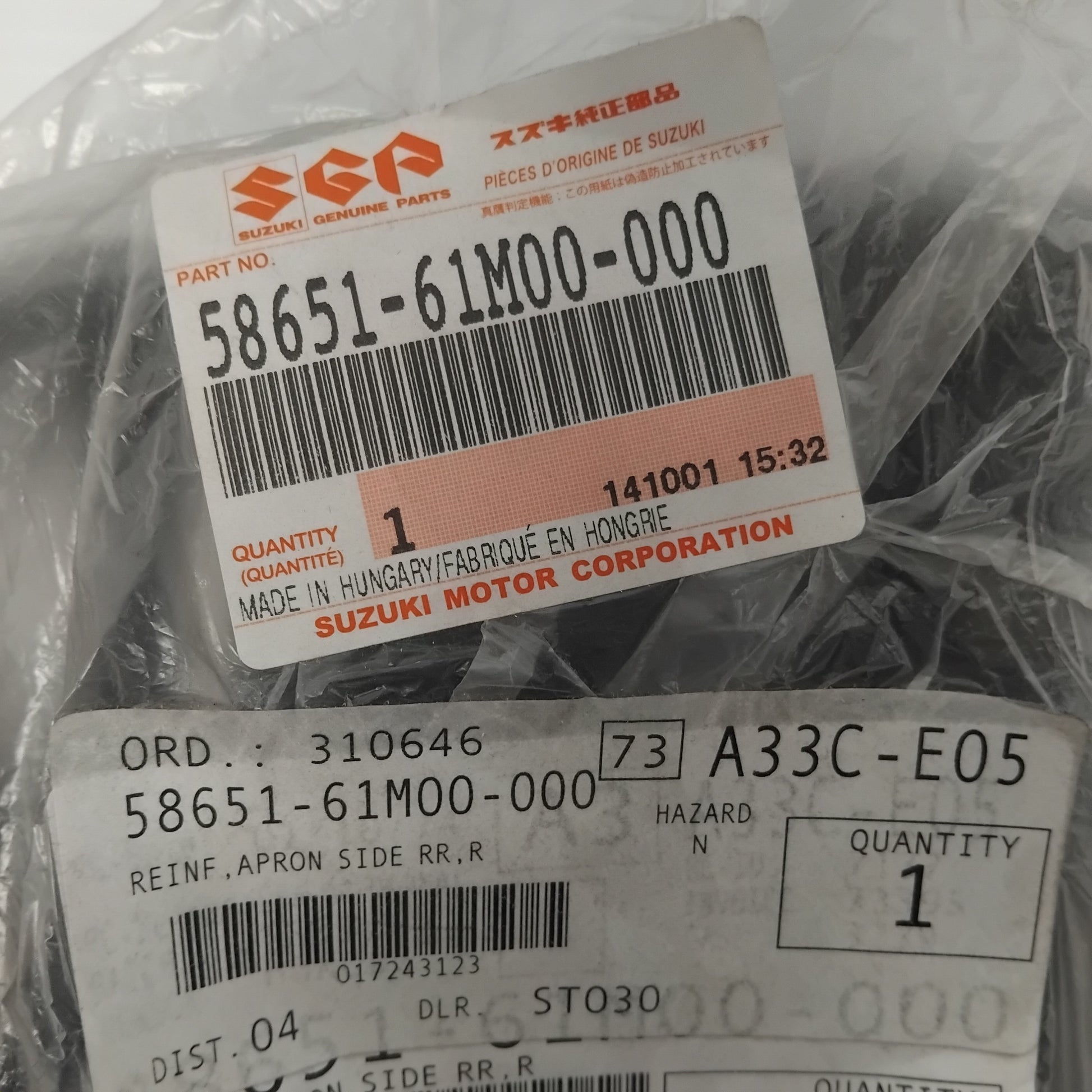 Genuine Suzuki Reinf,Apron Side Rr,R Part Number 58651-61M00-000. We haven't gotten around to imaging or describing this part yet! If you are interested in purchasing this part, our stock levels on eBay are updated hourly, if you need an image or have any other questions please get in touch.