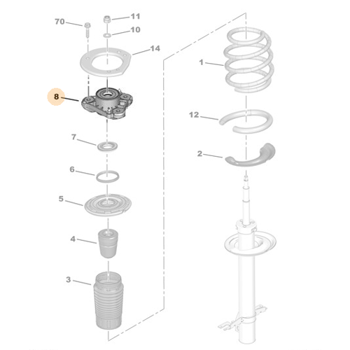 Genuine Peugeot shock absorber bracket for the front right/driver/offside axle of the vehicle. Marked as number 8 in the drawing.