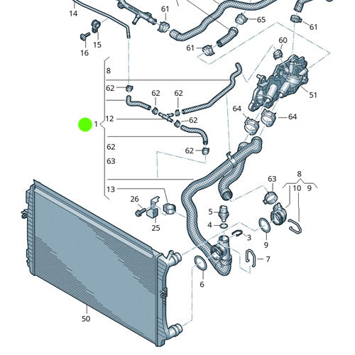 Genuine Coolant Radiator Hose - SEAT | 2Q0121049AK