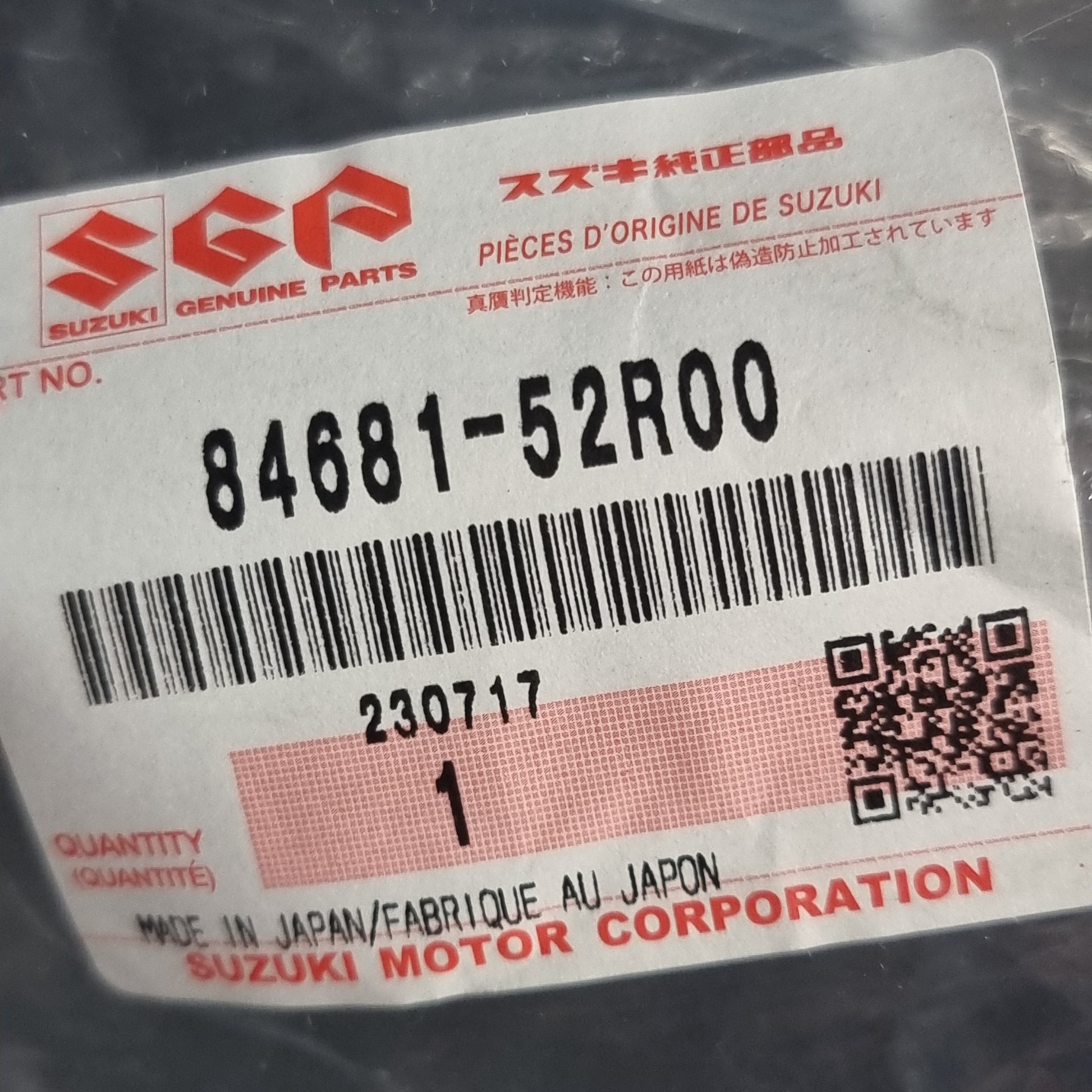 Genuine Suzuki Weatherstrip,Back Dr Part Number 84681-52R00-000. We haven't gotten around to imaging or describing this part yet! If you are interested in purchasing this part, our stock levels on eBay are updated hourly, if you need an image or have any other questions please get in touch.